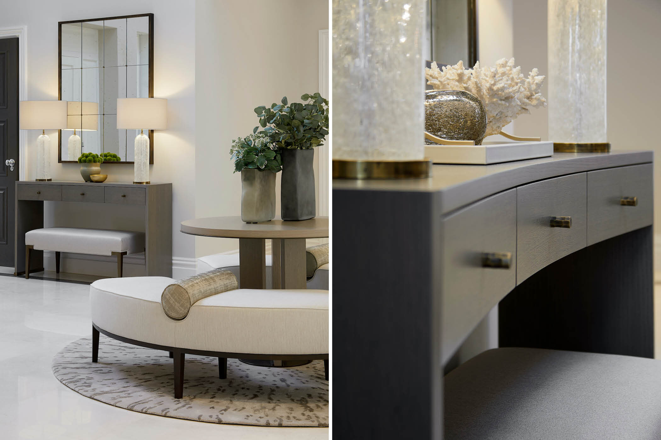 Transitional classic and contemporary with Tuscan influences. Our approach emphasizes modern craftsmanship and clean-lined silhouettes, enriched with sophisticated textures to create timeless, elegant interiors.