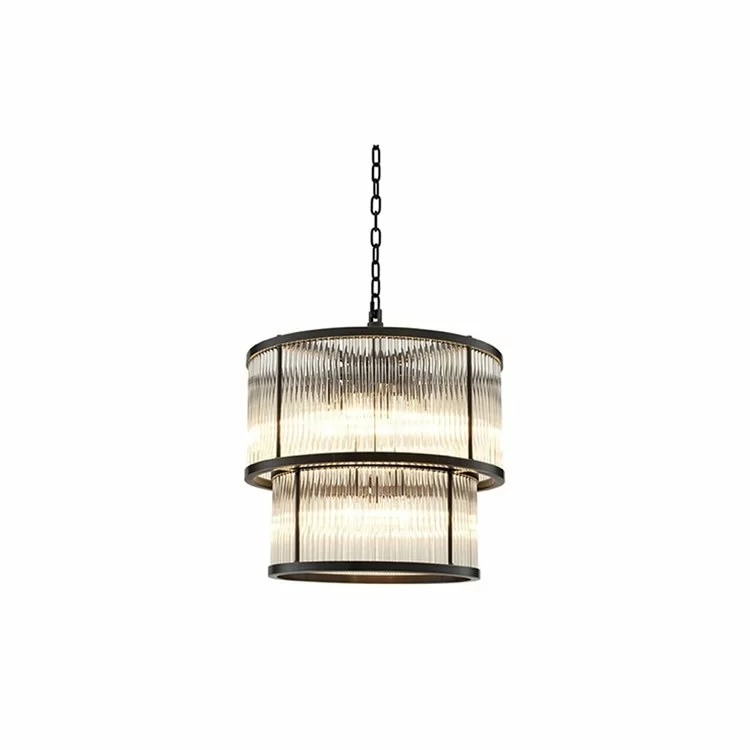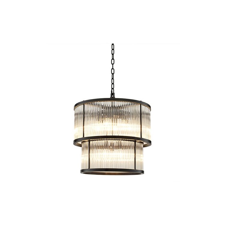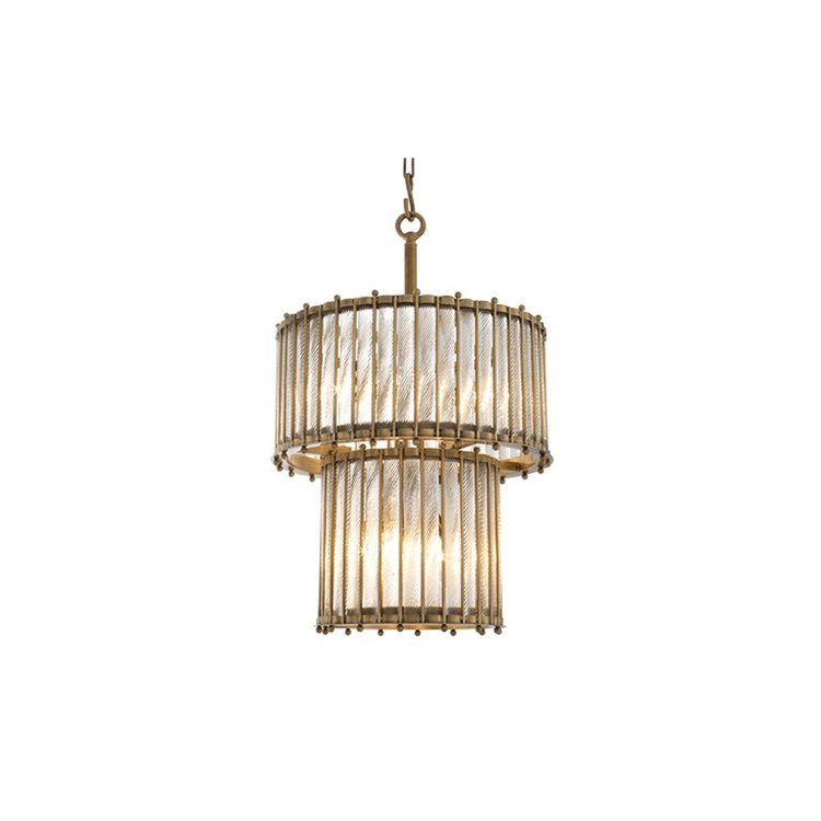 The Ruby S chandelier oozes Old Hollywood glamour with its ribbed glass panels and antique brass trim. The glass panels themselves create a unique aesthetic that is unseen in many other light fixtures, and they help this design to stand out from the crowd. The chandelier is just as functional as it is beautiful; its two-tiered design with ten bulb capacity ensures that ample light flows from the fixture.