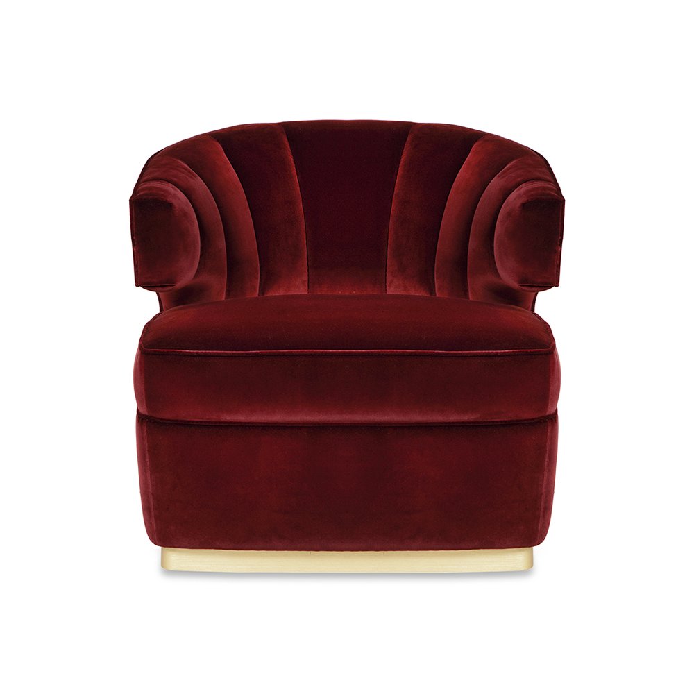 The overall chair is upholstered in a bespoke Vienna velvet which is in a rich jewel-toned garnet colourway. The fabric is woven by the most prestigious velvet mill in Italy, with over 100 years of history behind them. The cotton-modal mix luxury velvet has a dense, high pile texture which gives a lustre/sheen feel. As described by our CEO, this fabric is known as ‘Rolls Royce’ of fabrics.