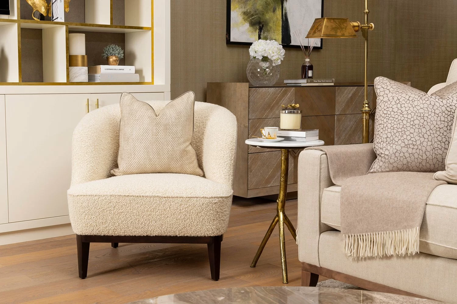 Where can you find bouclé to include in your own home, today we can see this fabric adding softness to pieces that you truly sink into to like chairs and sofas. Similarly to the durability of the material, when combined with our detail-orientated craftsmen our bouclé pieces are built to last a lifetime. Hand-crafted and designed with you in mind. Our pieces made with bouclé stand as an investment, a material made iconic in both the interior and fashion worlds is here to stay, and when used by our undeniably talented team, your bouclé piece will not only create a beautiful home but an experience of comfort, warmth and softness.