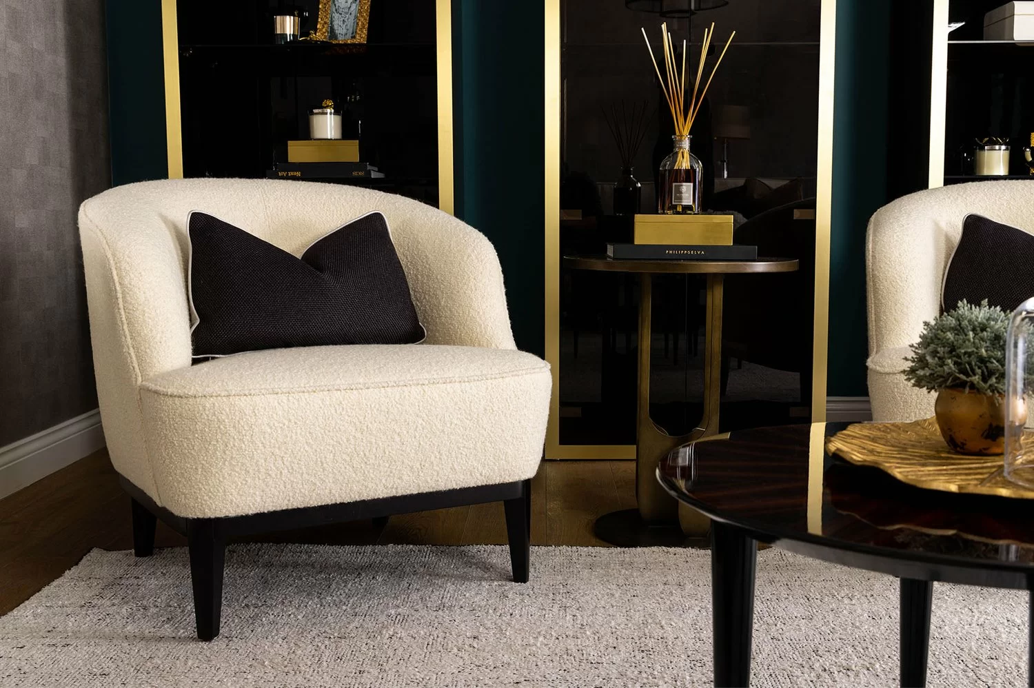 The question should not be why bouclé has returned but rather why it ever left. Although soft to touch, this material is incredibly durable; especially when it’s made by our natural quality fabrics from the finest European mills. Bouclé is known for its versatility, it's heavy enough to soften the edges of chairs, sofas or headboards but gentle enough to be used for pillows, rugs and plush throws. Within the right hands, like those of our experts in luxury, the possible designs and uses of bouclé are endless. Style in furniture is no longer merely the look of an item, but the way it feels and fits into our lives. Your home should not only be beautiful, but a place of solace and happiness, the location to retreat to after a day of business and rush, and that’s why we’ve reincorporated the cosiness of bouclé into our world.