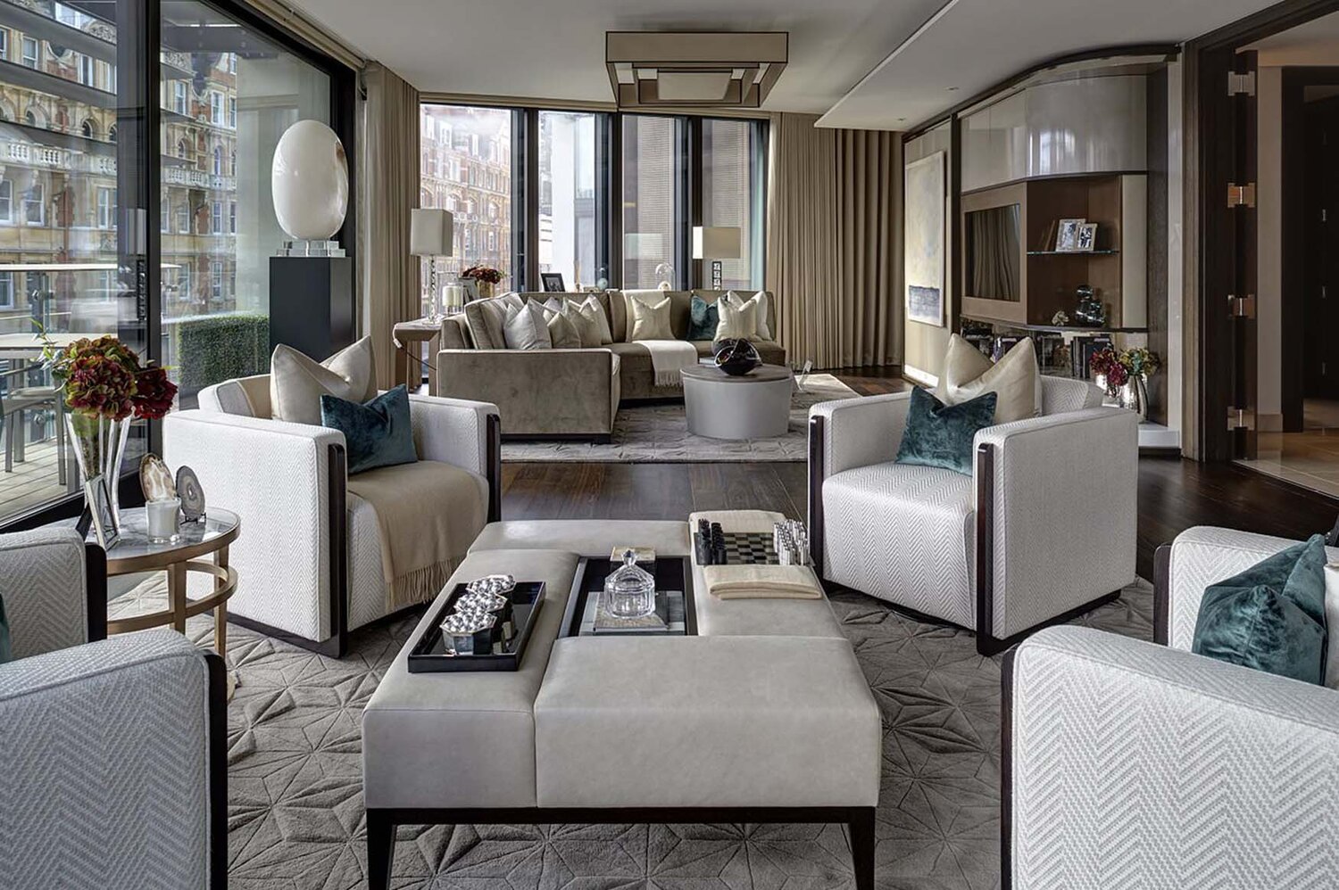Pick out key monochrome pieces of living room furniture, such as The Spencer Deluxe sofa. Our Spencer Deluxe infuses an additional element of luxury into the iconic range, with contrasting show wood detailing emphasising the monochrome look. You can specify contrasting piping, choosing from hundreds of brands, which sings the praises of attention to detail. Its elegantly curved arms and deep seated cushions are classically Art Deco-era in style, echoing Syrie Maugham’s unparalleled taste.