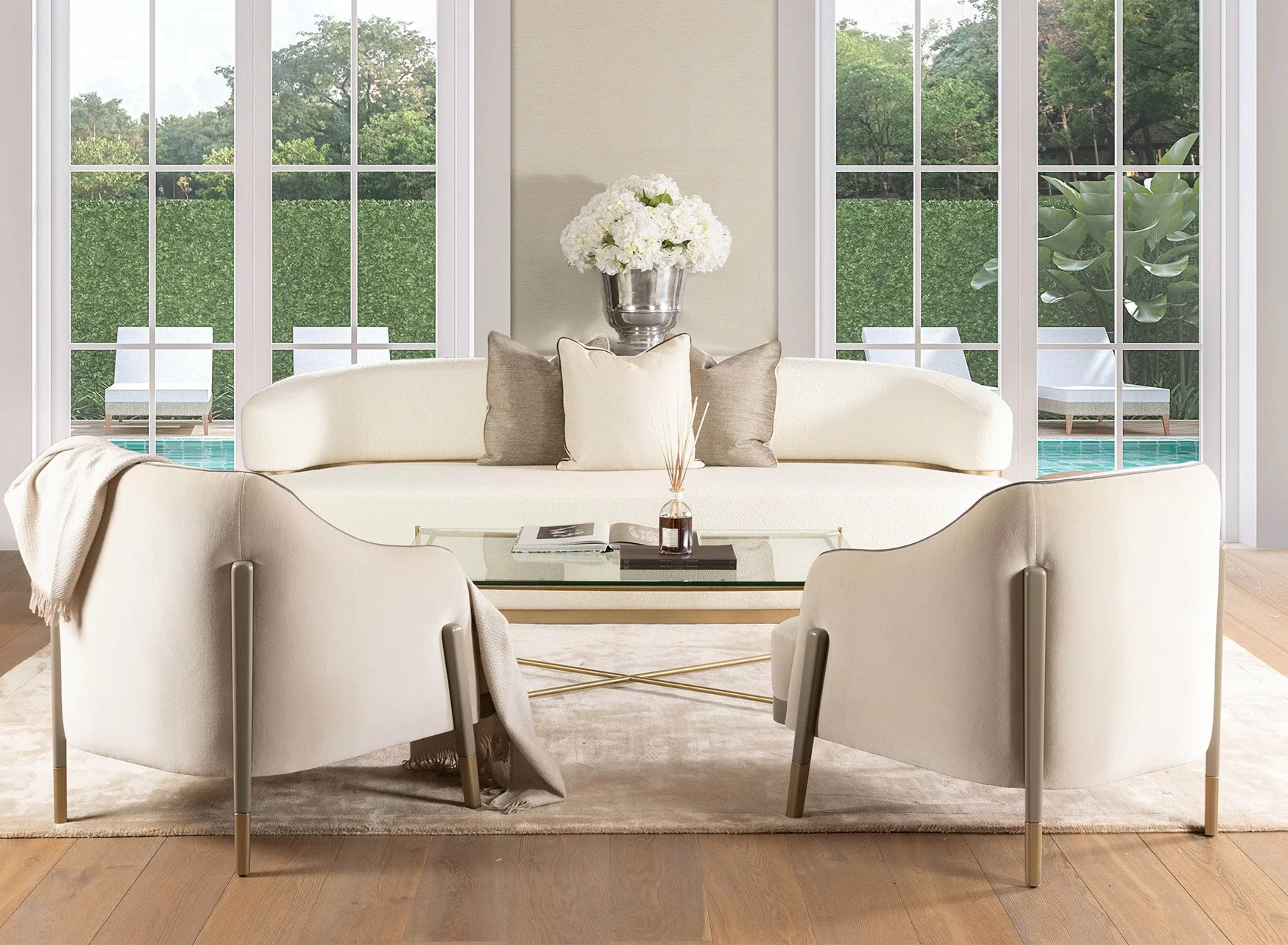 We are delighted to launch our new summer upholstery collection made of sumptuous linen and soft fabrics. Inspired by outdoor living the light colours, curves and gold finishes invite the summer indoors.